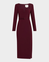 Long-Sleeve Belted Wool-Silk Midi Dress