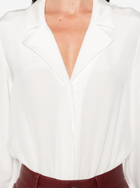 long-sleeve bodysuit Highlights - White - Long sleeves - Front fastening - Just a reminder that this piece must be tried on over your own garments. Imported Composition Silk 100%, Acetate 79%, Polyester 21% SIZE & FIT Model measurements Height 5 ft 10 in(1.78 m) Bust/Chest 33.46 in(85 cm) Hips 36.22 in(92 cm) Waist 23.22 in(59 cm) Washing instructions Dry Clean Only