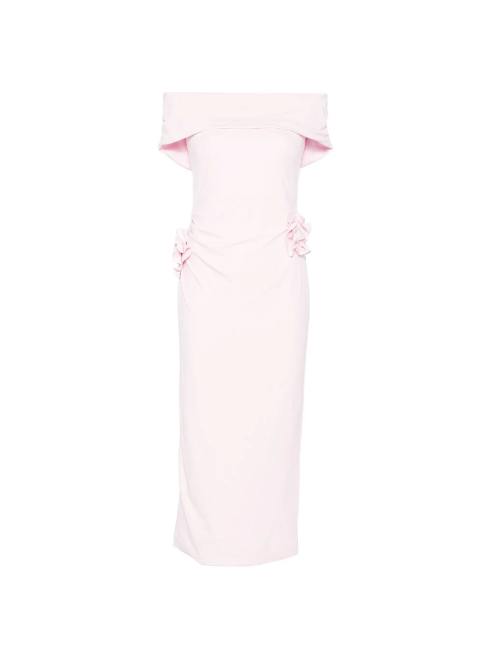 off-shoulder ruffled midi dress Highlights - Pink - Off-shoulder - Ruffled detail - Fitted silhouette - Midi length - Rear zip fastening Imported Composition Outer: Viscose 92%, Spandex/Elastane 8% Lining: Viscose 94%, Spandex/Elastane 6% Washing instructions Dry Clean Only