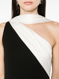 one-shoulder cady maxi dress Highlights - Black/white - Cady texture - Satin trim - Draped panel detail - Pleat detailing - Asymmetric neck - One-shoulder - Concealed side zip fastening - Straight hem - Rear slit - Full lining Imported Composition Outer: Acetate 60%, Polyester 40% Lining: Polyester 100% Washing instructions Dry Clean Only