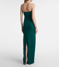 Roland Mouret has made a name for itself through a black tie-ready aesthetic and an expert use of draping. Made from wool and silk, this gown is characterized by its draped one-shoulder neckline and internal corsetry. Product Details - Material: 68% wool, 32% silk - Care instructions: dry clean - Made in China - Designer color name: Green - Item color: green - Lining: 100% polyester - Lining II: 84% polyester, 16% elastane - Closure: concealed zipper, zipped back, hook-fastening back - Long vent - Boning - Item number: P01080492 Size & Fit - Fits small to size - we recommend trying one size larger - Strapless - Internal boned corset for support - Fitted - Non-stretchy fabric - slit length 69cm-27" - The model seen in the picture is 178cm-5'10" and wearing a size UK 8