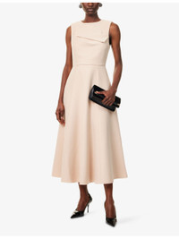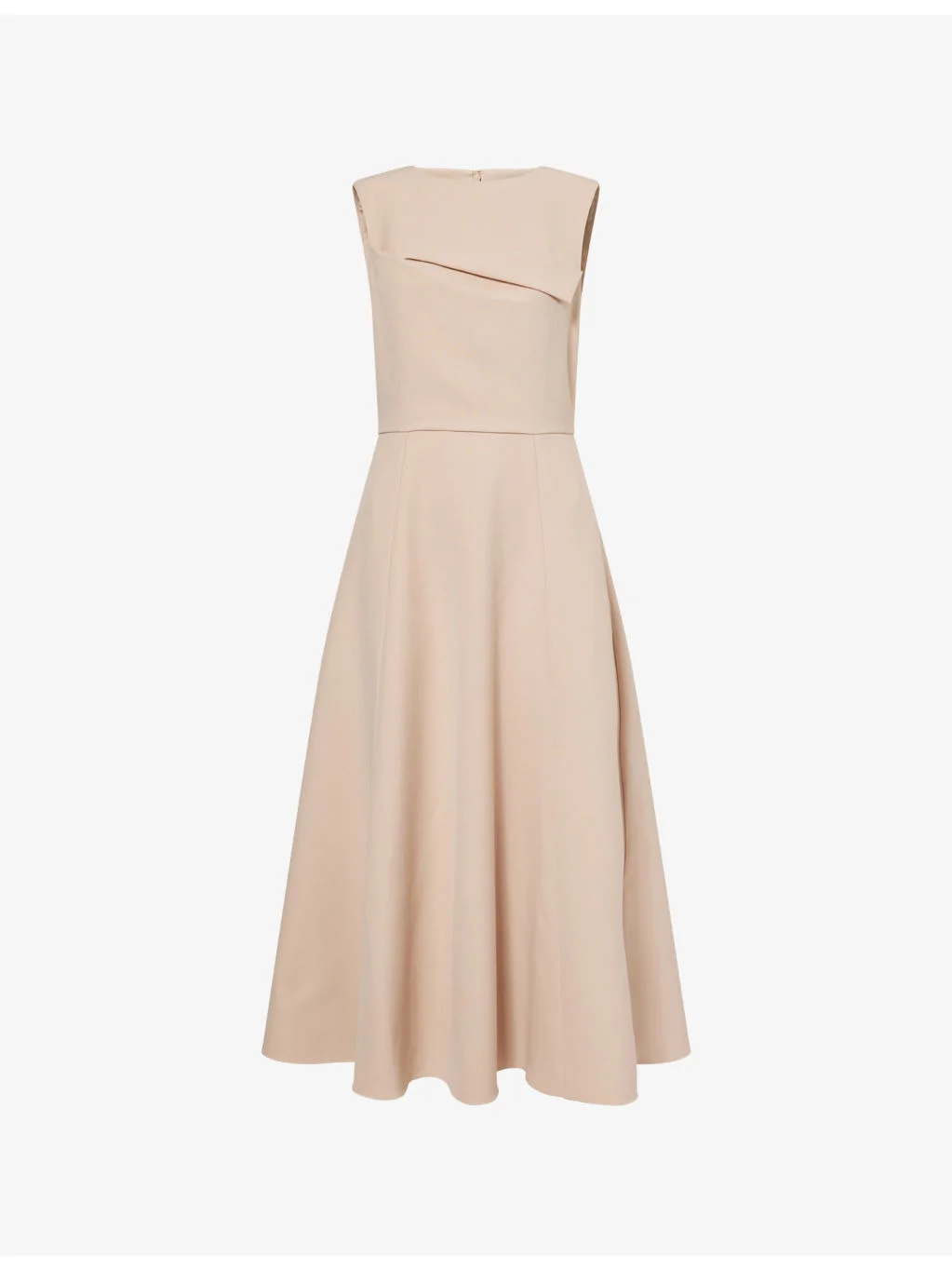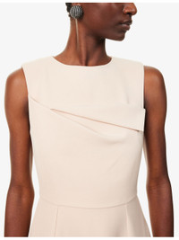 PRODUCT DETAILS - Roland Mouret stretch-woven midi dress - 87% polyester, 9% viscose, 4% elastane; lining 96% viscose, 4% elastane - Concealed zip fastening at back - Regular fit, round-neck, padded shoulders, sleeveless, panel at front, darts at front and back, all-over crepe texture, fully lined, flare hem - Dry clean - True to size - Size UK 8: length 50in / 128cm - Model is 5ft 10in/1.78m and wears a size UK 8 - Midweight, stretchy Ref: R04506105