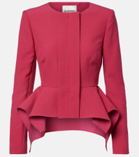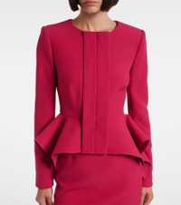 A unique understanding of precise tailoring sets Roland Mouret apart, seamlessly blending modern sophistication with an air of ease. Case in point, this jacket is crafted from crepe into a sculpted silhouette with a peplum hem. Product Details - Material: 86% polyester, 10% viscose, 4% elastane - Care instructions: dry clean - Made in China - Designer color name: Pink - Item color: pink - Lining: 100% polyester - Closure: concealed zipped front - Shoulder pads - Cuff: four buttons - Item number: P01104683 Size & Fit - Fits small to size - we recommend trying one size larger - Shoulder pad inserts - Fitted - Non-stretchy fabric - Falls to the hip - The model seen in the picture is 178cm-5'10" and wearing a size UK 8