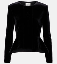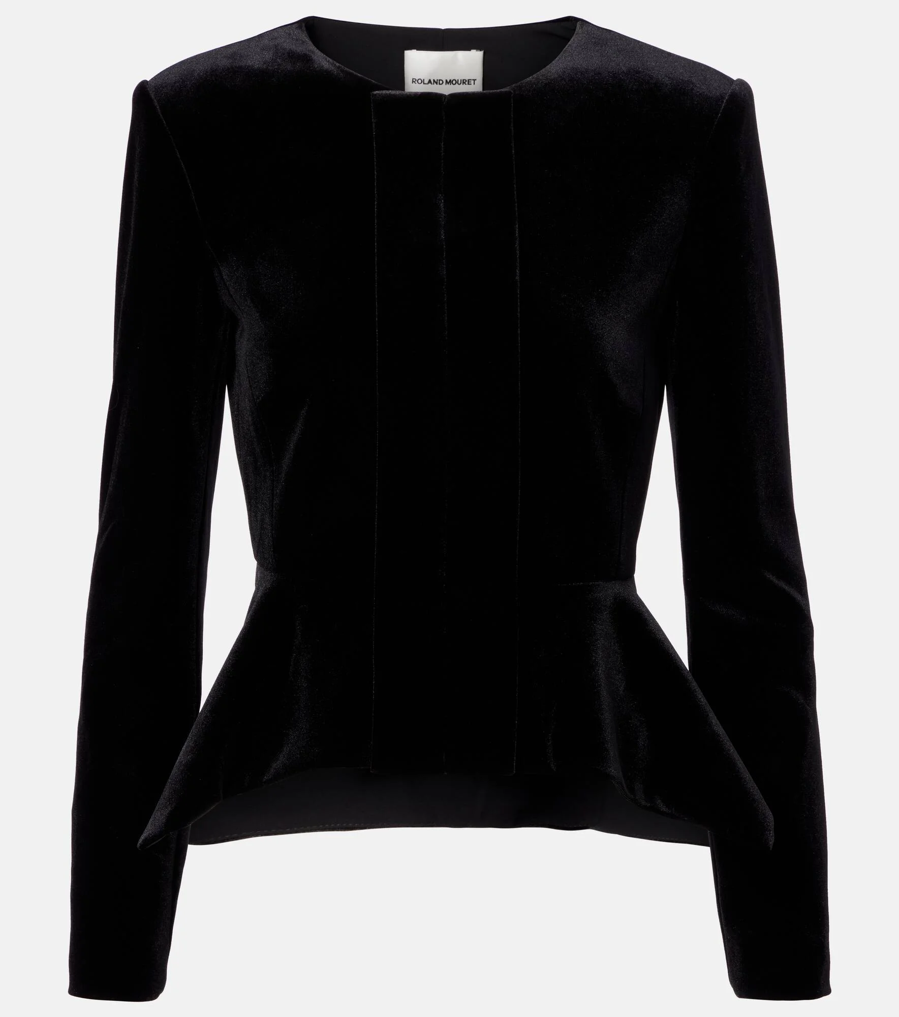 Renowned for precision tailoring and sculptural silhouettes, Roland Mouret brings timeless sophistication to modern dressing. This long-sleeved velvet jacket is defined by a flattering peplum silhouette that cinches the waist and a concealed zip closure. Product Details - Material: 92% polyester, 8% elastane - Care instructions: dry clean - Made in China - Designer color name: Black - Item color: black - Material II: 95% polyester, 5% elastane - Lining: 100% polyester - Cuff: four buttons - Closure: concealed zipped front - Item number: P01104673 Size & Fit - True to size - Shoulder pad inserts - Cinched waist - Non-stretchy fabric - Slightly cropped - The model seen in the picture is 178cm-5'10" and wearing a size UK 6