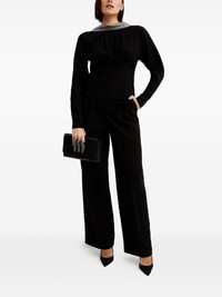 pressed-crease trousers Highlights - Black - Side pockets - High-rise - Hook fastening - Wide leg - Pressed crease Imported Composition Wool 70%, Silk 30% Washing instructions Read Manufacturer Guidelines