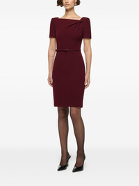 asymmetrical twist belted wool mini dress Highlights - Burgundy re - Short sleeves - Draped shoulder - Belted waist - Square neck - Fitted bodice Imported Composition Lining: Polyester 100% Outer: Wool 100% Washing instructions Read Manufacturer Guidelines