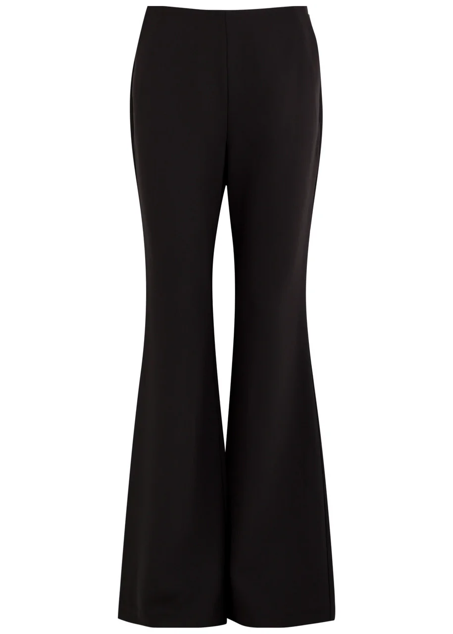 Info & Care Roland Mouret crepe trousers Side slip pockets Concealed zip fastening at side 60% acetate, 40% polyester Dry clean Size & Fit Inside leg length: 33.5 inches/ 85cm Midweight Flared-leg cut Model is 5'9"/ 175cm and wears a size UK8