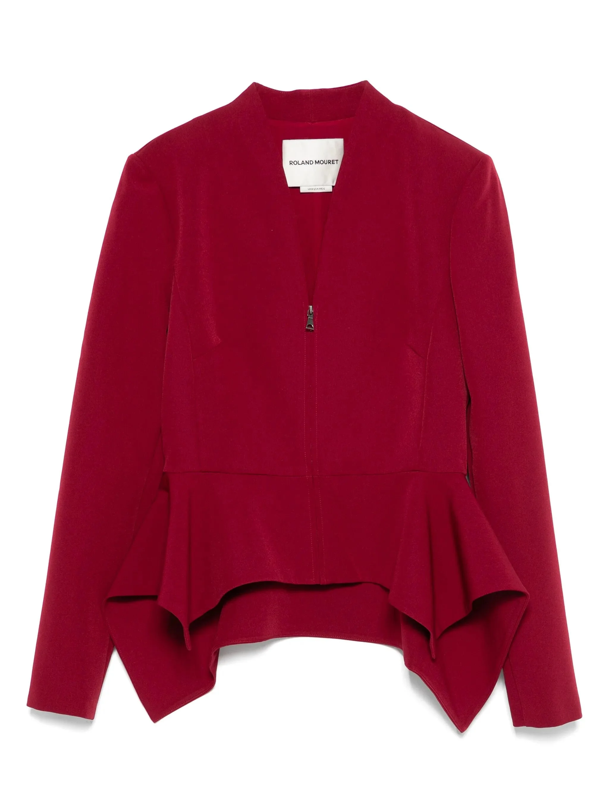 dark red front zip fastening stand-up collar V-neck long sleeves - Color: RED - Made in: China - Designer Style ID: 050J-LP-DR DARED Composition and care Outer Composition Polyester: 91.0%, Lining Composition Polyester: 100.0%, Outer Composition Elastane: 9.0%