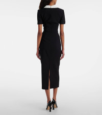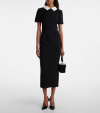 This midi dress by Roland Mouret is crafted from satin crepe for a smooth, elegant finish. The sophisticated design features short sleeves, a contrasting shirt collar, a buttoned placket, and a flared hem for a chic look. Product Details - Material: 86% polyester, 10% viscose, 4% elastane - Care instructions: dry clean - Made in China - Designer color name: Black - Item color: black - Lining: 100% polyester - Shoulder pads - Collar: classic (Straight point) - Closure: two-way concealed zipped back, hook-fastening back - Short vent - Item number: P01104682 Size & Fit - True to size - Shoulder pad inserts - Fitted - Non-stretchy fabric - slit length 40cm-15.5" - The model seen in the picture is 178cm-5'10" and wearing a size UK 6
