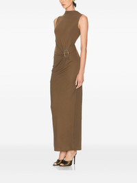 mock-neck ring-detail dress Highlights - Khaki - Mock neck - Sleeveless - Ring detail - Fitted bodice - Maxi length Imported Composition Viscose 94%, Elastane 6% Washing instructions Read Manufacturer Guidelines