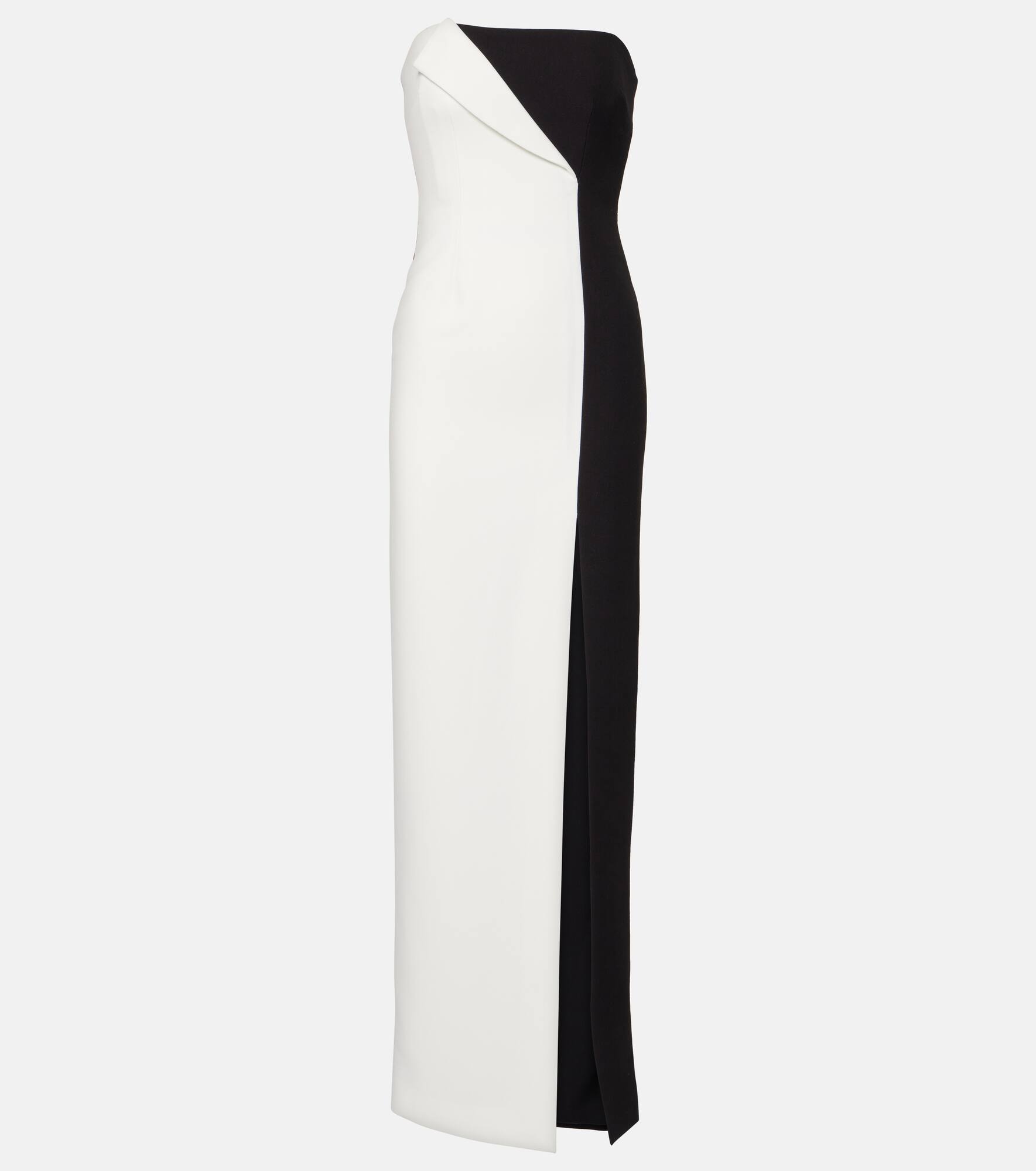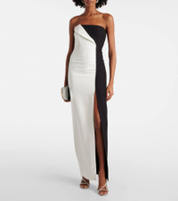 Product Details - Material: 86% polyester, 10% viscose, 4% elastane - Care instructions: spot clean - Made in China - Designer color name: Monochrome - Lining: 100% polyester - Closure: zipped back - Item number: P00996889 Size & Fit - True to size - Strapless - Internal laced corset for support - Cinched waist - Non-stretchy fabric - The model seen in the picture is 178cm-5'10" and wearing a size UK 8