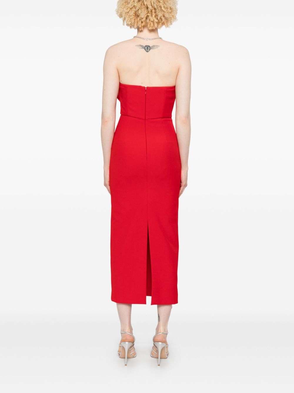 flower drape midi dress Highlights - Crimson - Concealed rear hook and zip fastening - Built-in cups bra - Bandeau style - Rear slit Imported Composition Lining: Polyester 100% Outer: Polyester 84%, Viscose 11%, Elastane 5% SIZE & FIT Model measurements Height 5 ft 10 in(1.77 m) Bust/Chest 34.25 in(87 cm) Hips 37.4 in(95 cm) Waist 29.13 in(74 cm) FittingInformation Designed for a close fit throughout The internal bodice offers support and shape Made from a midweight stretch fabric, this piece offers elasticity and flexibility when worn
