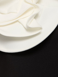 DETAILS - Back zip closure - Flower applique at neckline - Model is wearing a size 2 - Composition: 75% Polyester, 20% Viscose, 5% Elastane