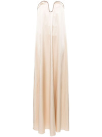 rhinestone satin maxi dress Highlights - Light beige - Silk - Satin weave - Sweetheart neck - Bustier-style neckline - Strapless - Rhinestone embellishment - Full lining - Long length - Curved hem - Concealed rear zip fastening Imported Composition Outer: Silk 100% Lining: Polyester 97%, Elastane 3% SIZE & FIT Model measurements Height 5 ft 11 in(1.8 m) Bust/Chest 31.49 in(80 cm) Hips 36.22 in(92 cm) Waist 25.59 in(65 cm) FittingInformation Designed to be unstructured, offering a loose fit throughout Particularly long in length; consider your own measurements Made from a midweight fabric This piece fits true to size – take your usual size