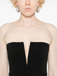 strapless midi dress Highlights - Black - Silk-wool blend - Stretch-design - Cady texture - Boned bodice - Cut-out detailing - Dart detailing - Square neck - Concealed rear hook and zip fastening - Internal rear hook and eye fastening - Strapless - Fitted waistline - Rear slit - Straight hem - Mid-calf length - Full lining Imported Composition Outer: Silk 69%, Wool 29%, Elastane 2% Lining: Polyester 100% SIZE & FIT Model measurements Height 5 ft 9 in(1.75 m) Bust/Chest 34.64 in(88 cm) Hips 36.61 in(93 cm) Waist 26.37 in(67 cm) FittingInformation Designed for a slim fit that sits just away from the body offering a close yet comfortable fit The internal bodice offers support and shape Made from a midweight non-stretch fabric This piece fits true to size – take your usual size Washing instructions Dry Clean Only