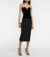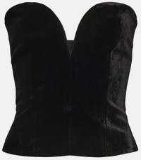 Product Details - Material: 77% viscose, 20% silk, 3% elastane - Closure: zipped back - Adjustable inner tabs at the waist - Care instructions: dry clean - Made in China - Designer color name: Black - Lining: 97% polyester, 3% elastane - Lining II: 91% polyester, 9% elastane - Item number: P00889872 Size & Fit - True to size - Strapless - Internal laced corset for support - Fitted - Non-stretchy fabric - Cropped - The model seen in the picture is 178cm-5'10" and wearing a size UK 8
