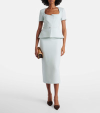 This short-sleeved mini dress from Roland Mouret is crafted from a wool and silk blend. A flattering peplum waist, a detachable slim belt, and a concealed zip fastening at the back define the piece's glamorous silhouette. Product Details - Material: 62% wool, 38% silk - Care instructions: dry clean - Made in China - Designer color name: Mint - Item color: green - Lining: 100% polyester - Detachable shoulder pads - Detachable belt - Item number: P01060450 Size & Fit - True to size - Ideal fit for larger bust sizes - Shoulder pad inserts - Cinched waist - Non-stretchy fabric - slit length 39,0cm-15.5" - The model seen in the picture is 178cm-5'10" and wearing a size UK 8