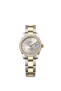Oyster, 31 mm, Oystersteel, yellow gold and diamonds Reference278383RBR Make a date of a day This Oyster PerpetualDatejust 31inOystersteel and yellow goldfeaturesa silver, diamond-setdial andan Oysterbracelet. Silver dial A watchmaking technique This dial features a large VI set with 11 diamonds. The sunray finish creates delicate light reflections on many dials in the Oyster Perpetual collection. It is obtained using masterful brushing techniques that create grooves running outwards from the centre of the dial. Light is diffused consistently along each engraving, creating a characteristic subtle glow that moves depending on the position of the wrist. Once the sunray finish has been completed, the dial colour is applied using Physical Vapour Deposition or electroplating. A light coat of varnish gives the dial its final look. Diamond-set bezel A sparkling symphony Gem-setters, like sculptors, finely carve the precious metal to hand-shape the seat in which each gemstone will be perfectly lodged. With the art and craft of a jeweller, the stone is placed and meticulously aligned with the others, then firmly secured in its gold or platinum setting. Besides the intrinsic quality of the stones, several other criteria contribute to the beauty of Rolex gem-setting: the precise alignment of the height of the gems, their orientation and position, the regularity, strength and proportions of the setting as well as the intricate finishing of the metalwork. A sparkling symphony to enhance the watch and enchant the wearer. Yellow Rolesor A meeting of two metals Gold is coveted for its lustre and nobility. Steel reinforces strength and reliability. Together, they harmoniously combine the best of their properties. A true Rolex signature, Rolesor has featured on Rolex models since the early 1930s, and was trademarked as a name in 1933. It is one of the prominent pillars of the Oyster collection. The Oyster bracelet Alchemy of form and function The Oyster bracelet is a perfect alchemy of form and function, aesthetics and technology, designed to be both robust and comfortable. It is equipped with an Oysterclasp and the Easylink comfort extension link, also exclusive to Rolex. This ingenious system allows the wearer to increase the bracelet length by approximately 5 mm, providing additional comfort in any circumstance.