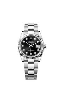 Oyster, 36 mm, Oystersteel and white gold Reference126234 Make a date of a day This Oyster PerpetualDatejust 36inOystersteel and white goldfeaturesa bright black, diamond-setdial andan Oysterbracelet. Bright black dial A watchmaking technique The sunray finish creates delicate light reflections on many dials in the Oyster Perpetual collection. It is obtained using masterful brushing techniques that create grooves running outwards from the centre of the dial. Light is diffused consistently along each engraving, creating a characteristic subtle glow that moves depending on the position of the wrist. Once the sunray finish has been completed, the dial colour is applied using Physical Vapour Deposition or electroplating. A light coat of varnish gives the dial its final look. Fluted bezel A Rolex signature The Rolex fluted bezel is a mark of distinction. Originally, the fluting of the Oyster bezel had a functional purpose: it served to screw the bezel onto the case helping to ensure the waterproofness of the watch. It was therefore identical to the fluting on the case back, which was also screwed onto the case for waterproofness, using specific Rolex tools. Over time, the fluting became an aesthetic element, a genuine Rolex signature feature. Today the fluted bezel is a mark of distinction, in gold on this Datejust 36. White Rolesor A meeting of two metals Gold is coveted for its lustre and nobility. Steel reinforces strength and reliability. Together, they harmoniously combine the best of their properties. A true Rolex signature, Rolesor has featured on Rolex models since the early 1930s, and was trademarked as a name in 1933. It is one of the prominent pillars of the Oyster collection. The Oyster bracelet Alchemy of form and function The Oyster bracelet is a perfect alchemy of form and function, aesthetics and technology, designed to be both robust and comfortable. It is equipped with an Oysterclasp and the Easylink comfort extension link, also exclusive to Rolex. This ingenious system allows the wearer to increase the bracelet length by approximately 5 mm, providing additional comfort in any circumstance.