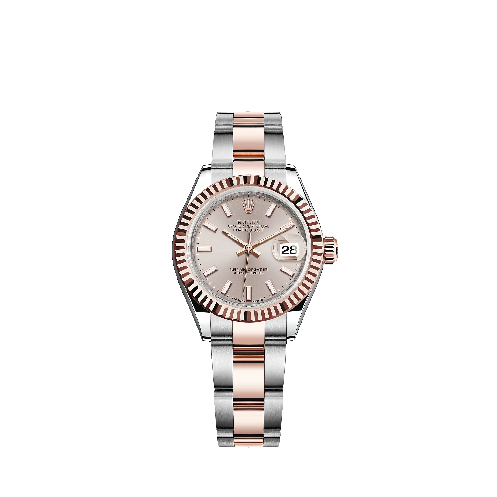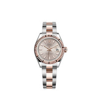 Oyster, 28 mm, Oystersteel and Everose gold THIS OYSTER PERPETUAL LADY-DATEJUST IN EVEROSE ROLESOR FEATURES A SUNDUST DIAL AND AN OYSTER BRACELET. The light reflections on the case sides and lugs highlight the elegant profile of the 28 mm Oyster case, which is fitted with a Fluted bezel. Rolex's classic feminine watch, the Lady-Datejust is in the lineage of the Datejust, the emblematic model that has been a byword for style and accurate timekeeping. Model features - SUNDUST DIAL - EVEROSE ROLESOR - THE OYSTER BRACELET - THE CYCLOPS LENS - 2236 MOVEMENT Specifications Reference 279171
