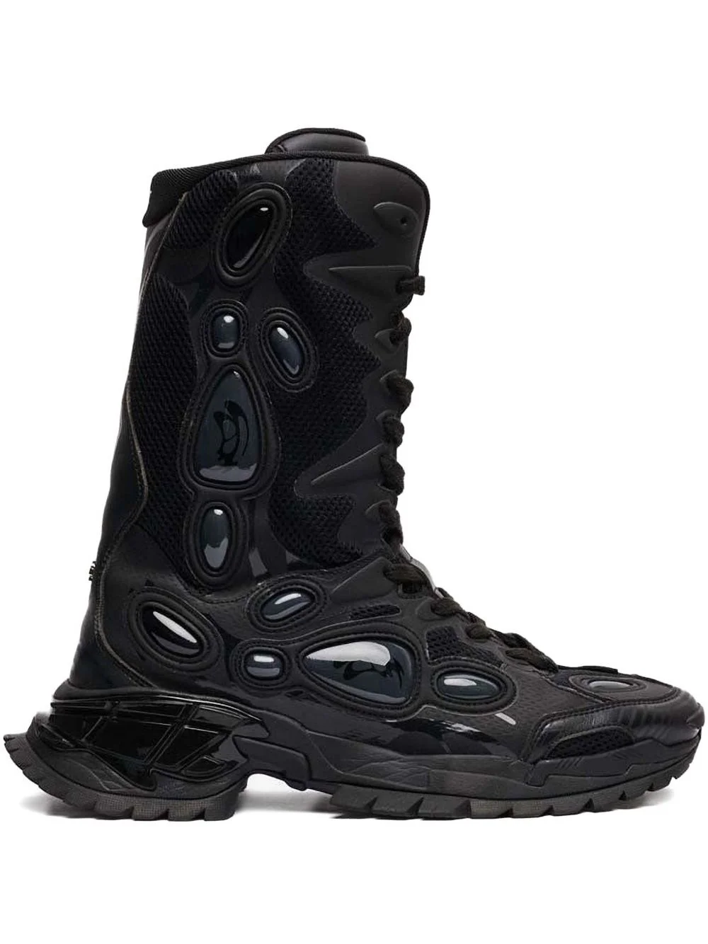 Nucleo high-top lace-up boots Highlights - Black - Sculptural design - Padded tongue - Rubber sole - Mesh panels - Textured accents Imported Composition Outer: Recycled TPU 50%, Polyester 30%, Polyurethane 20% Sole: Vinyl 60% Rubber 30%, Recycled TPU 10% Lining: Fabric 100%