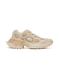 Low-top mesh and buffed faux-leather sneakers in tan. · Bonded trim and rubberized appliqués throughout · Logo flag at vamp · Lace-up closure · Logo hardware at tongue and heel · Padded tongue and collar · Mesh lining · Bloom® Algae resin EVA midsole · Treaded foam rubber sole Supplier color: Desert