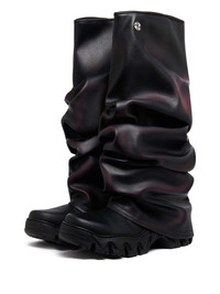 ruched knee-high boots Highlights - Black - Slouchy design - Padded upper - Chunky rubber sole - Logo detail Imported Composition Lining: Fabric 100%, Polyurethane 62%, Bamboo 38% Sole: Thermoplastic Polyurethane (TPU) 100%