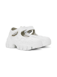 Handcrafted low-top buffed faux-leather sneakers in white. · Cutouts throughout · Paneled construction · Velcro ankle strap · Logo flag at outer side · Logo engraved at heel counter · Mesh and buffed faux-leather lining · Treaded TPU platform sole · Platform: H2" Supplier color: White future leather Upper: synthetic. Sole: thermoplastic polyurethane. Made in Portugal 241654F128008