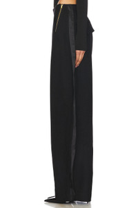 - Self: 50% wool 50% polyester Lining: 55% viscose 45% polyester Contrast Fabric: 97% polyester 3% spandex - Made in China - Dry clean only - Exposed side zipper closure.4-pocket design - Midweight twill fabric - Item not sold as set.30" at the knee narrows to 21" at the leg opening - Revolve Style No. RONR-WP91 - Manufacturer Style No. 392003TWI