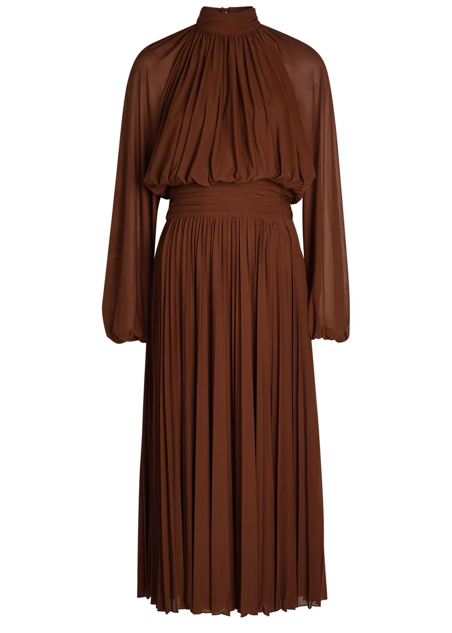 Info & Care Ronny Kobo stretch-mesh dress Gathered details, button-fastening high-neck, raglan sleeves, elasticated cuffs, open back, partially lined Concealed hook and zip fastening at back 88% polyester, 12% elastane Dry clean Size & Fit Length shoulder to hem: 52 inches/ 132cm Midweight Loose fit, slim across the waist Model is 5'9"/ 175cm and wears a size small