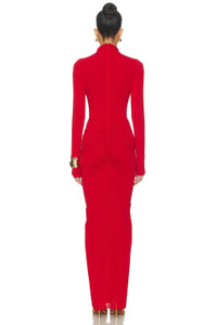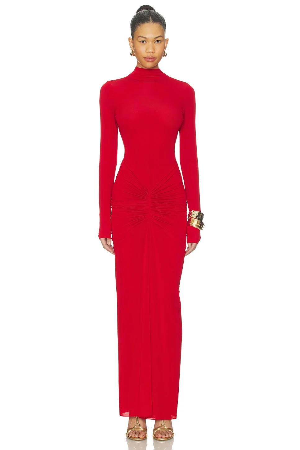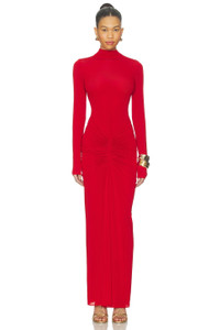- 90% polyester, 10% spandex - Made in China - Dry clean only - Partially lined - Hidden back zip with hook and eye closure - Lightweight jersey fabric - Garment is intentionally sheer, undergarments will show through - Please note undergarment not included - Revolve Style No. RONR-WD821 - Manufacturer Style No. 4584018TJE