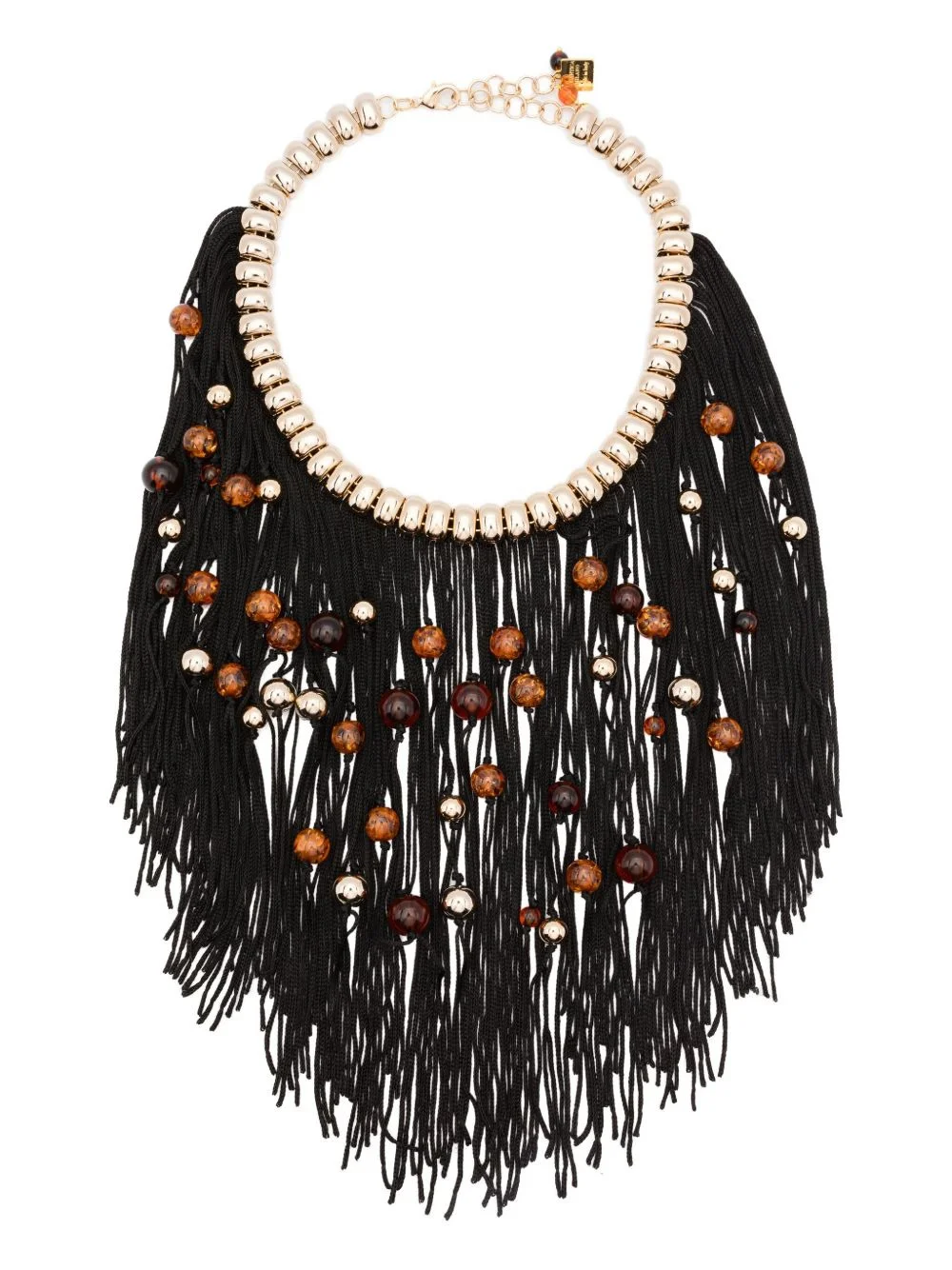 beaded fringe necklace Highlights - Gold-tone - Cord fringes - Multiple beads - Lobster clasp fastening - Normal everyday use and external agents may reduce the lustre of gemstones and gold surfaces. to maintain, use specific, non-abrasive products specially meant for cleaning jewellery. Made in Italy SIZE & FIT Measurement Length when open 16.53 in(42 cm) WIDTH 7.87 in(20 cm)
