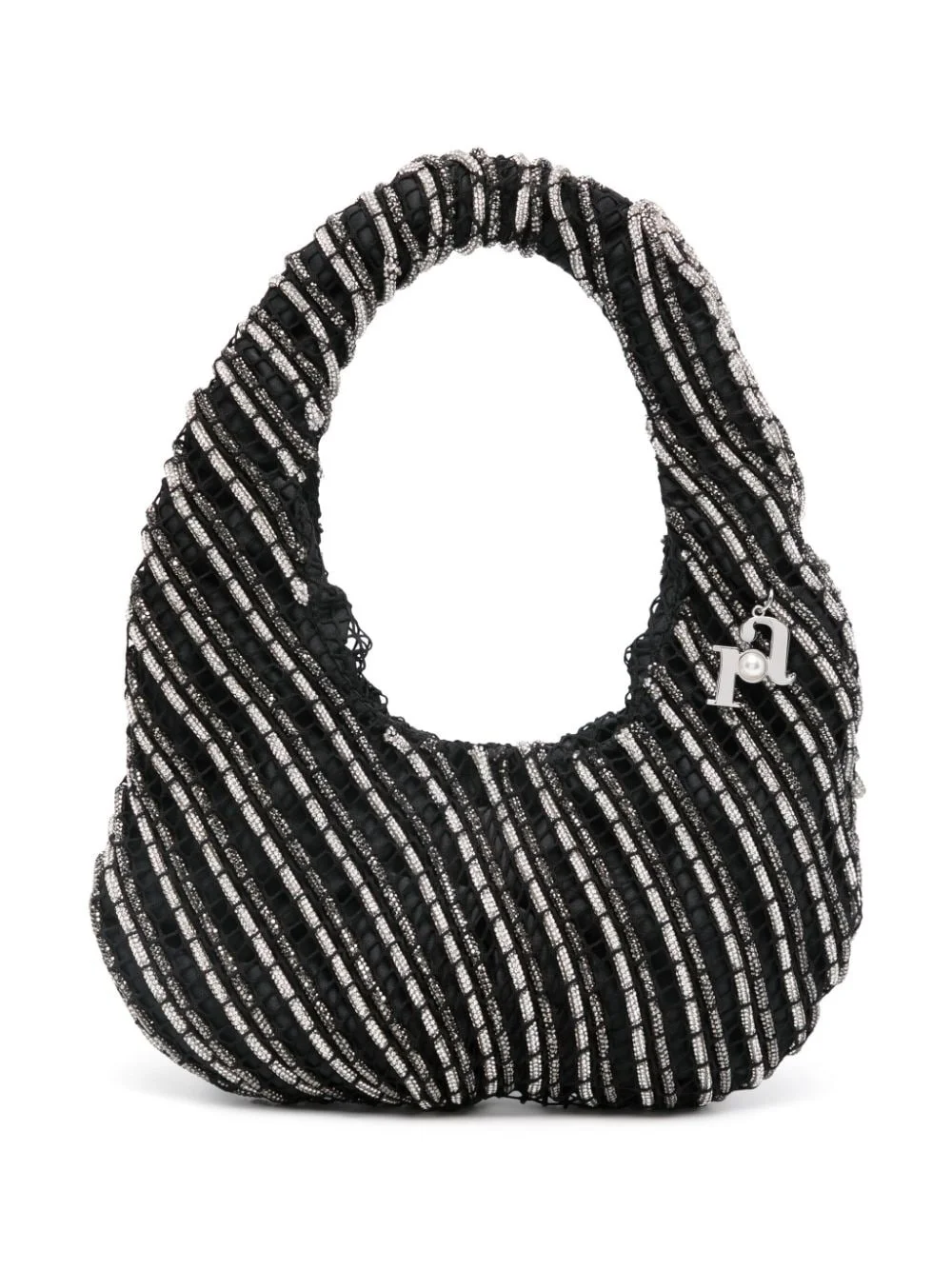 Bridget tote bag Highlights - Black - Padded design - Glass crystal diagonal stripe pattern - Open top - Single top handle - Logo charm - Main compartment - Full lining Made in Italy Composition glass 100%, Fabric 100% SIZE & FIT Model measurements Height 5 ft 11 in(1.8 m) Bust/Chest 33.07 in(84 cm) Hips 37.4 in(95 cm) Waist 25.19 in(64 cm) Measurement DEPTH 1.96 in(5 cm) HANDLE 5.51 in(14 cm) HEIGHT 5.9 in(15 cm) WIDTH 7.87 in(20 cm)