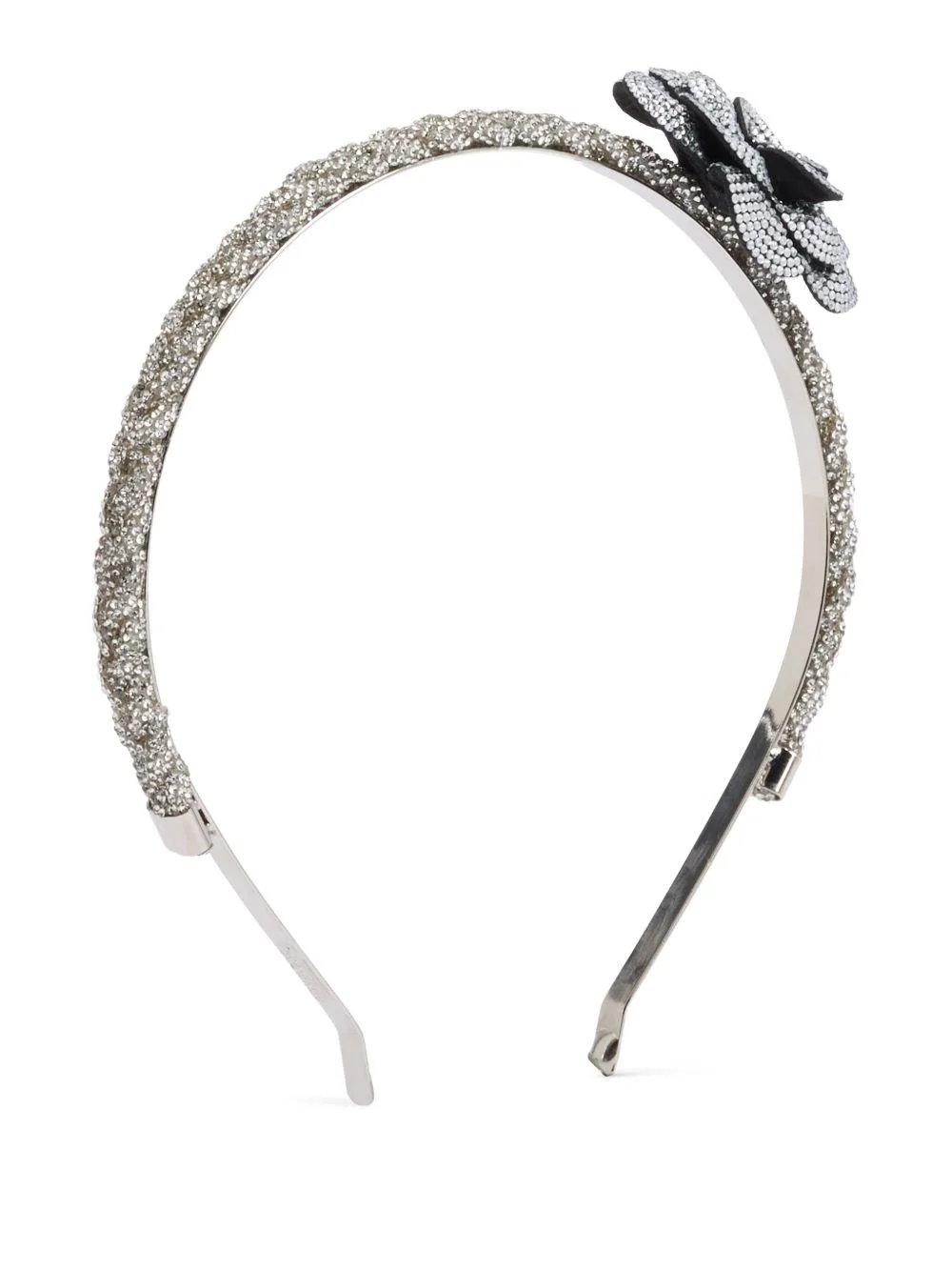 floral-applique headband Highlights - Silver-tone - Crystal embellishment - Curve-edge body Made in Italy Composition Crystal 100%, Fabric 100%, Brass 100%