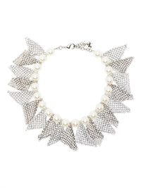 Frizz embellished necklace Highlights - Silver-tone - Faux-pearl embellishment - Chain detail - Lobster clasp fastening Made in Italy SIZE & FIT Measurement Length when open 16.53 in(42 cm) WIDTH 2.36 in(6 cm)