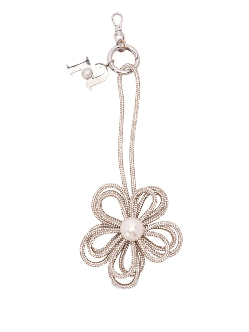 Gaia keyring Highlights - Silver-tone - Crystal embellishment - Flower pendant - Lobster clasp fastening - Engraved logo Made in Italy Composition Brass 100%, Faux Pearl 100%