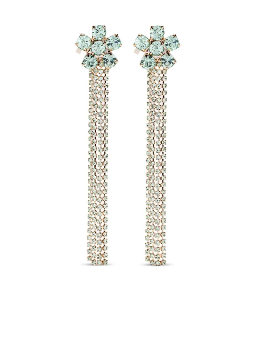 flower-cluster chain earrings Highlights - Gold-toned - Gold-plated - Flower-shaped cluster - Chain detail - This is a single earring. Made in Italy SIZE & FIT Model measurements Height 5 ft 10 in(1.78 m) Bust/Chest 31.49 in(80 cm) Hips 37 in(94 cm) Waist 23.62 in(60 cm) Measurement HEIGHT 3.93 in(10 cm) Weight (single earring) 6 g(6 g) WIDTH 0.62 in(1.6 cm)