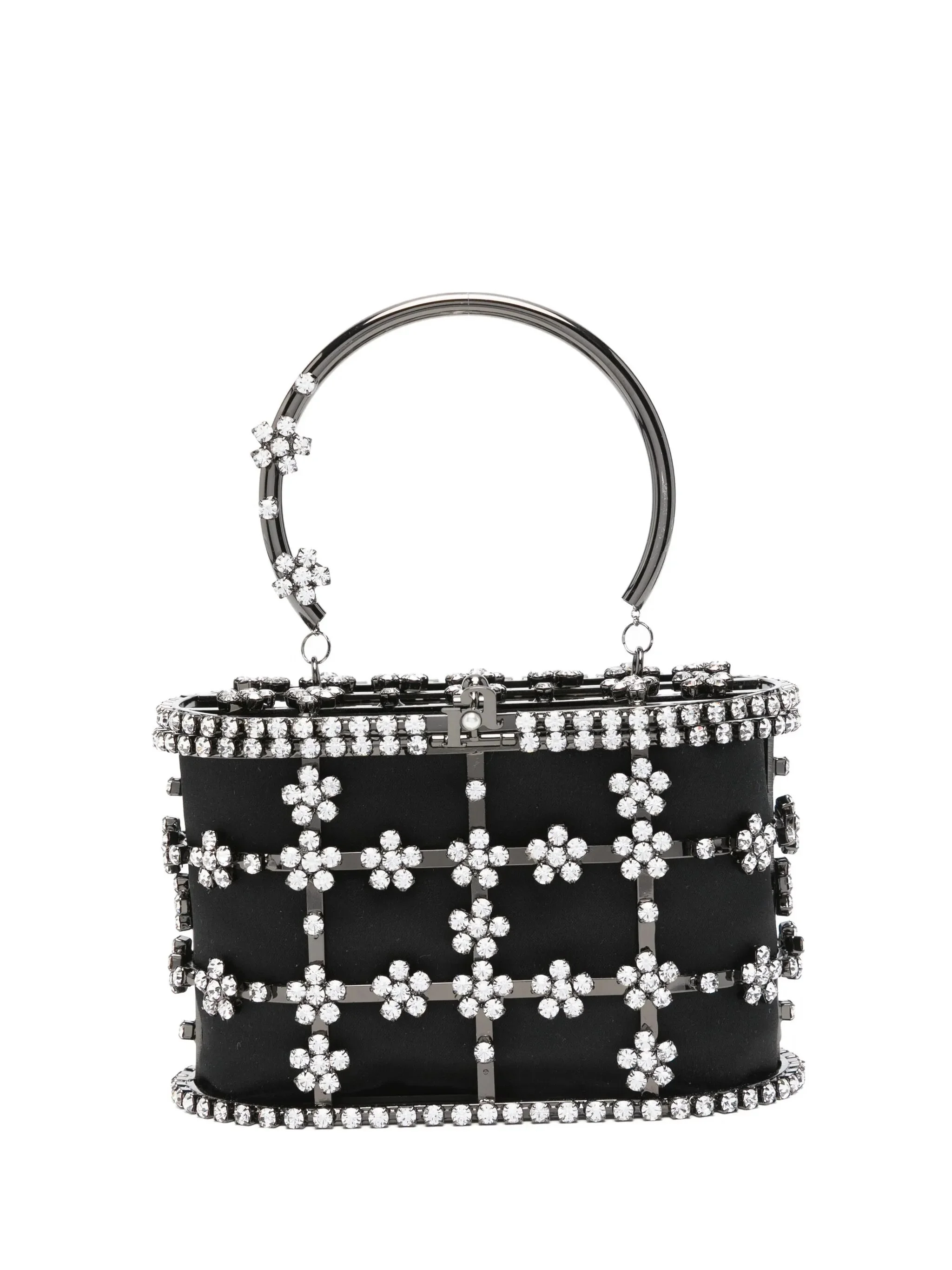 black crystal embellishment flower motif metal top handle oval shape - depth: 8.0 centimetres, handle: 8.0 centimetres, height: 10.0 centimetres, width: 15.0 centimetres - Color: BLACK - Made in: Italy - Designer Style ID: B18218 MINI HOLLI BK/CL Composition and care Outer Composition Metal: 100.0%, Outer Composition Glass: 100.0%, Lining Composition Fabric: 100.0%