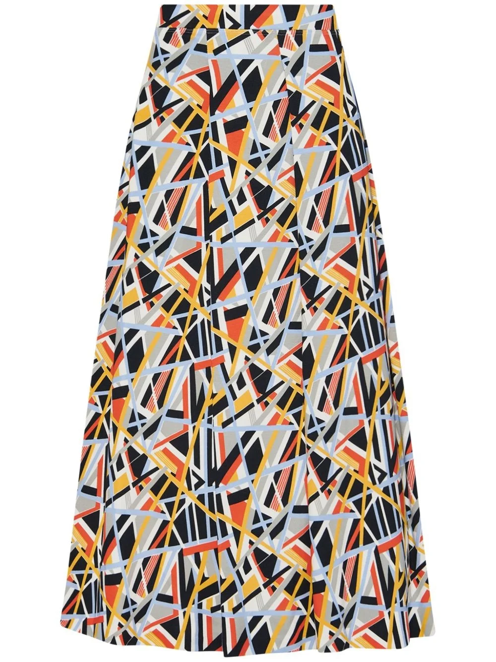 abstract-print pleat-detail maxi skirt Highlights - Multicolour - Stretch-design - Abstract pattern print - Pleat detailing - Elasticated waistband - High-waisted - Straight hem - Pull-on style Made in United States Composition Viscose 95%, Elastane 5%