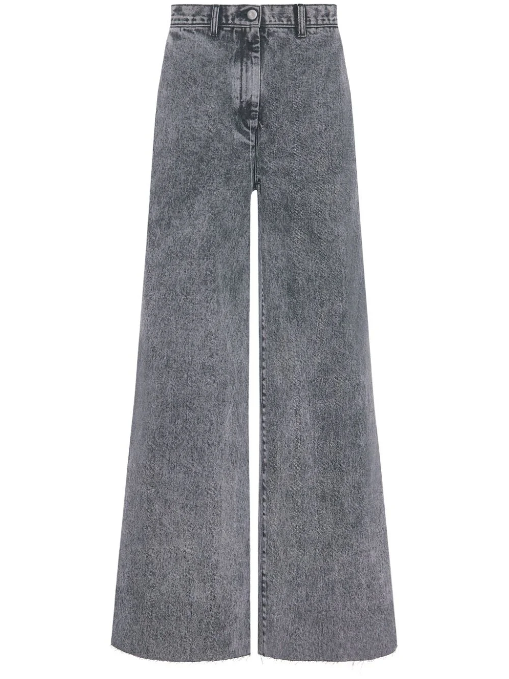 acid-wash wide-leg jeans Highlights - Charcoal grey - Cotton - Denim - Acid wash - Wide leg - Mid-rise - Belt loops - Front button and zip fastening - Two side inset pockets - Two rear welt pockets - Extra-long length Imported Composition Cotton 100%