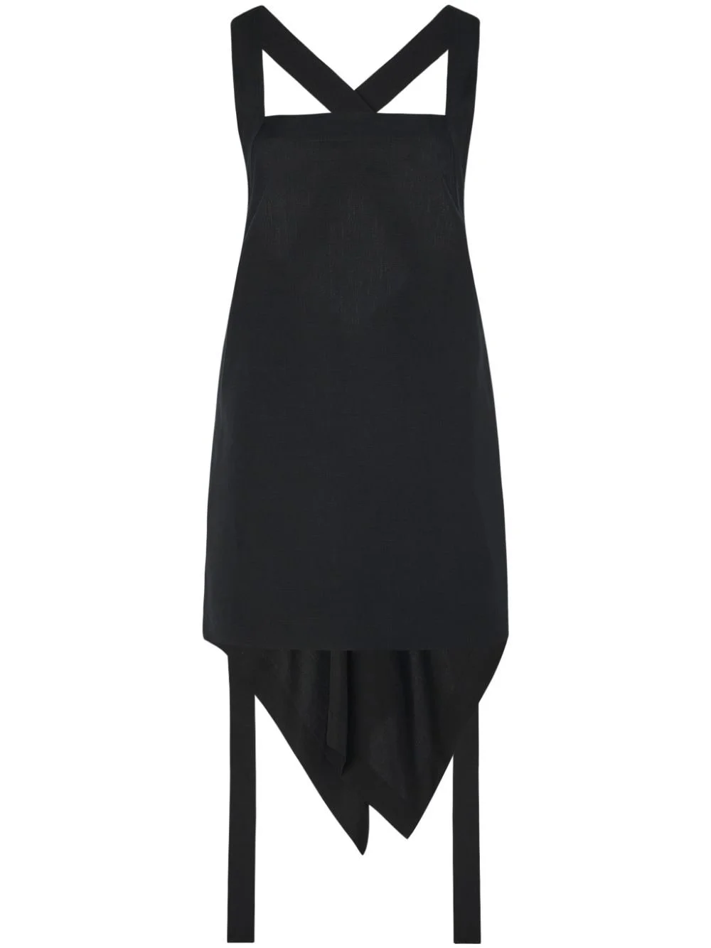 asymmetric apron top Highlights - Black - Ecovero™ blend - Square neck - Sleeveless - Rear criss-cross straps - Asymmetric hem Made in United States Composition Silk 100%