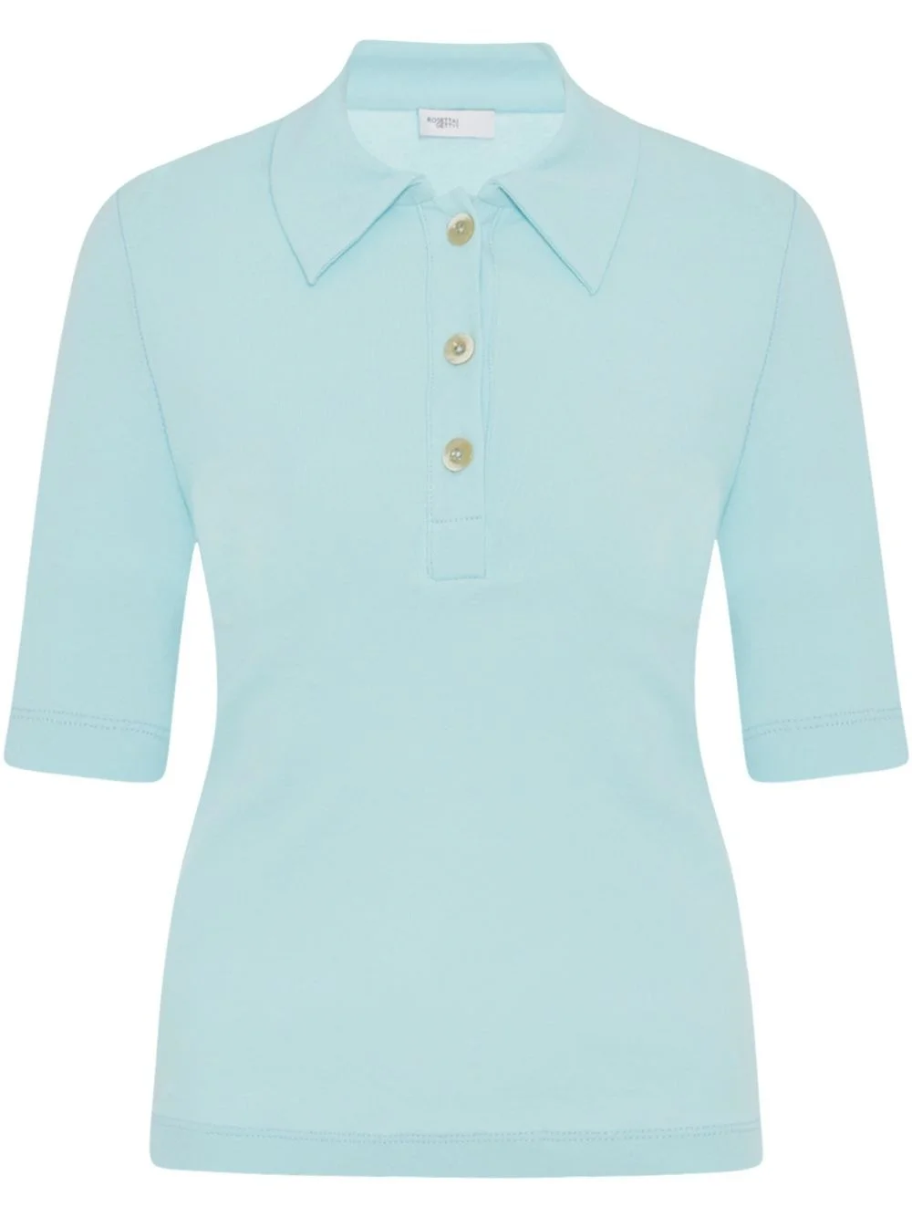 button-fastening polo top Highlights - Baby blue - Short front button fastening - Polo collar - Short sleeves - Straight hem Made in United States Composition Organic Cotton 100%