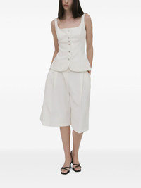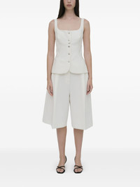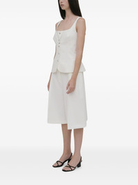 button-front square-neck top Highlights - White - Square neckline - Button front - Sleeveless - Peplum hem Made in United States Composition Polyester 89%, Polyurethane 11% Washing instructions Read Manufacturer Guidelines