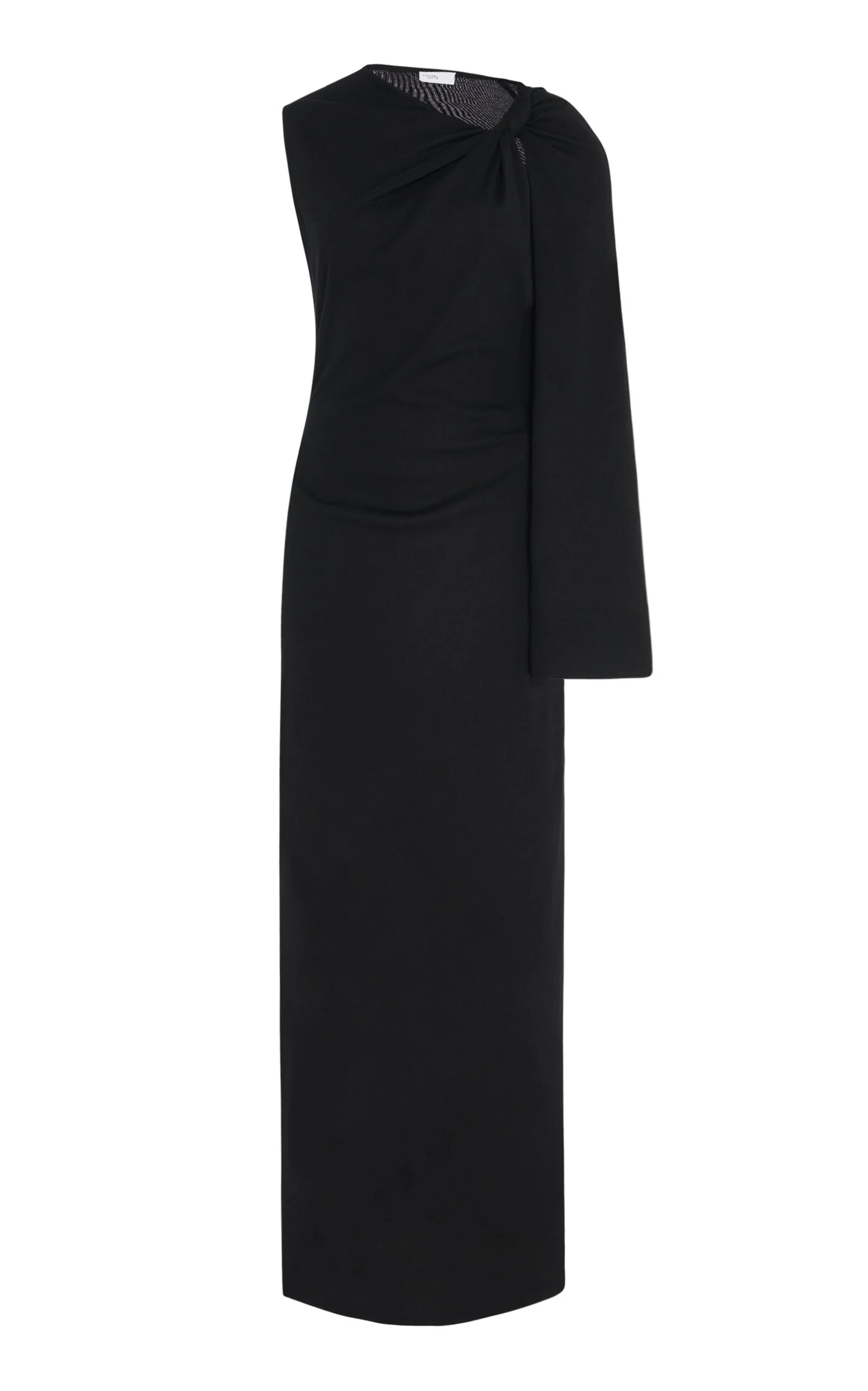 Rosetta Getty believes dressing should be effortless, so her basics are exceptionally versatile. Designed with a striking silhouette, Rosetta Getty’s maxi dress has a twisted neckline and a body-conscious fit with an elbow-length cape overlay that can be worn off-shoulder or wrapped around the neck. Crafted in beautiful icy cotton rib jersey—an inherently more casual material—it is incredibly versatile and can be dressed up or down. PRODUCT DETAILS - Not eligible for expedited shipping - Slip on - Composition: 100% cotton - Dry clean - Imported SIZE & FIT - Our model is wearing a size Small - Model is 5'10" with a 31" bust, 23.5" waist, and 33.5" hip