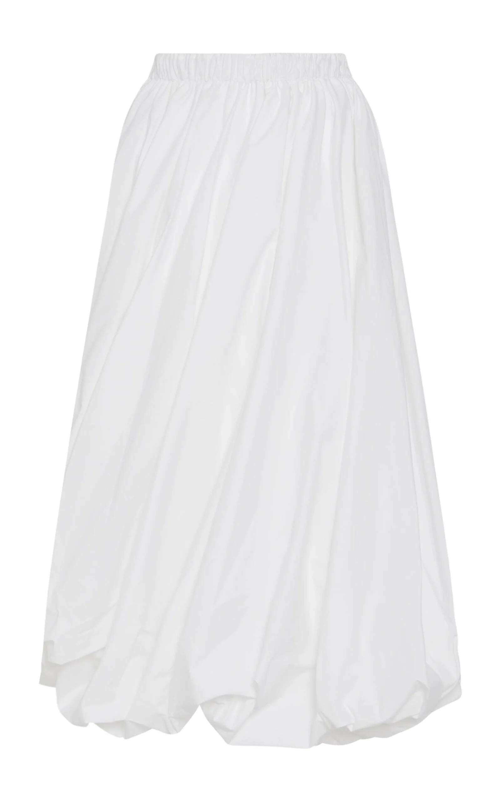 Rosetta Getty believes dressing should be effortless, so her basics are exceptionally versatile. A voluminous bubble hem lends intrigue to Rosetta Getty's newest skirt silhouette. Cut to a maxi length, the Stretch Cotton Poplin fabrication imparts a cloud-like feel to the twisted shape while an elasticized waist lends ease. PRODUCT DETAILS - This item is not eligible for expedited shipping - Spring '25 - Pull on - Composition: 97% Cotton, 3% Elastane - Dry clean - Made in the USA SIZE & FIT - Designed for a regular fit