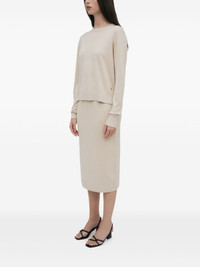 crew-neck long-sleeve T-shirt Highlights - Beige - Ribbed cuffs - Ribbed hem - Crew neck - Long sleeves Imported Composition Silk 70%, Merino 20%, Cashmere 10% Washing instructions Read Manufacturer Guidelines