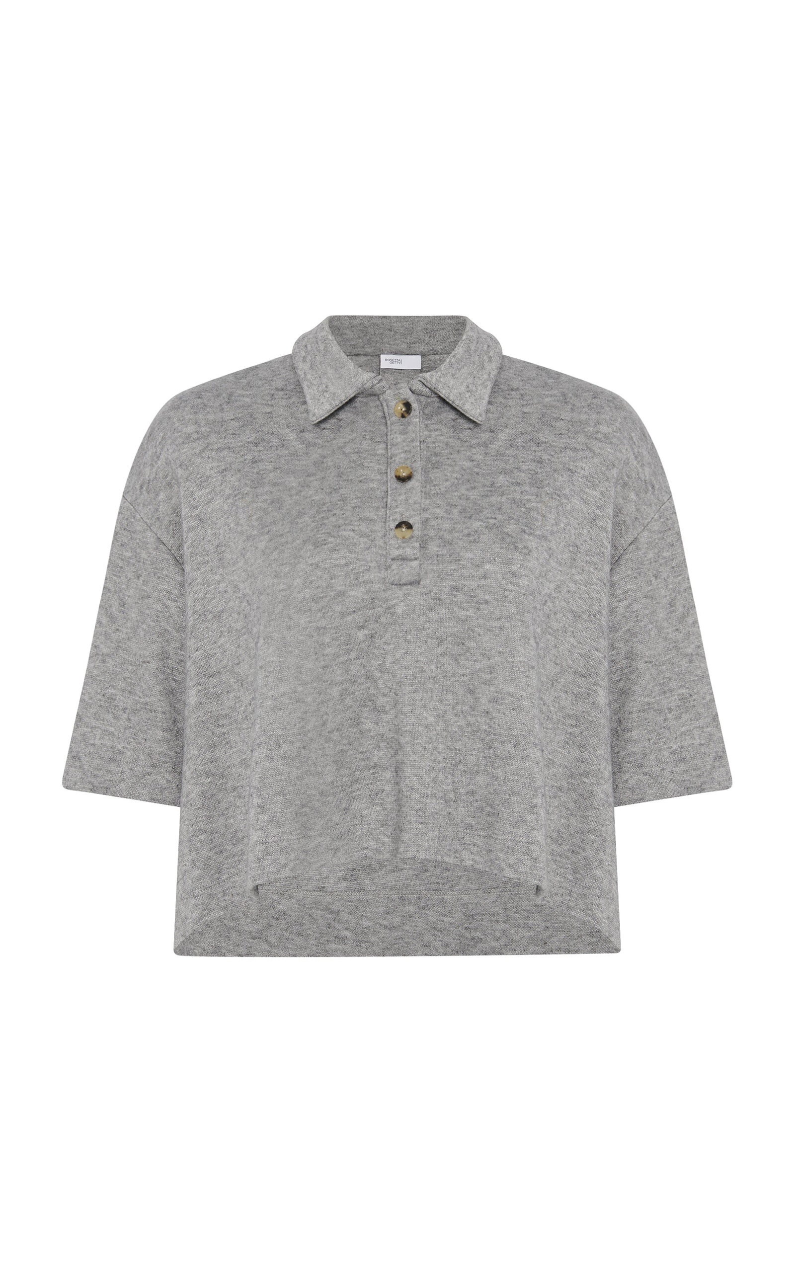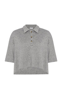 Rosetta Getty believes dressing should be effortless, so her basics are exceptionally versatile. Cut to a wide, boxy silhouette, our Cropped Oversized Polo is designed to hit at the waist. Spring 25's new Melange Cozy Knit lends softness to the style, imbued with timeless appeal and inherent versatility that allows it to be dressed up or down. PRODUCT DETAILS - This item is not eligible for expedited shipping - Spring '25 - Button fastening - Composition: 85% Viscose, 15% Polyester - Dry clean - Made in the USA SIZE & FIT - Designed for a regular fit
