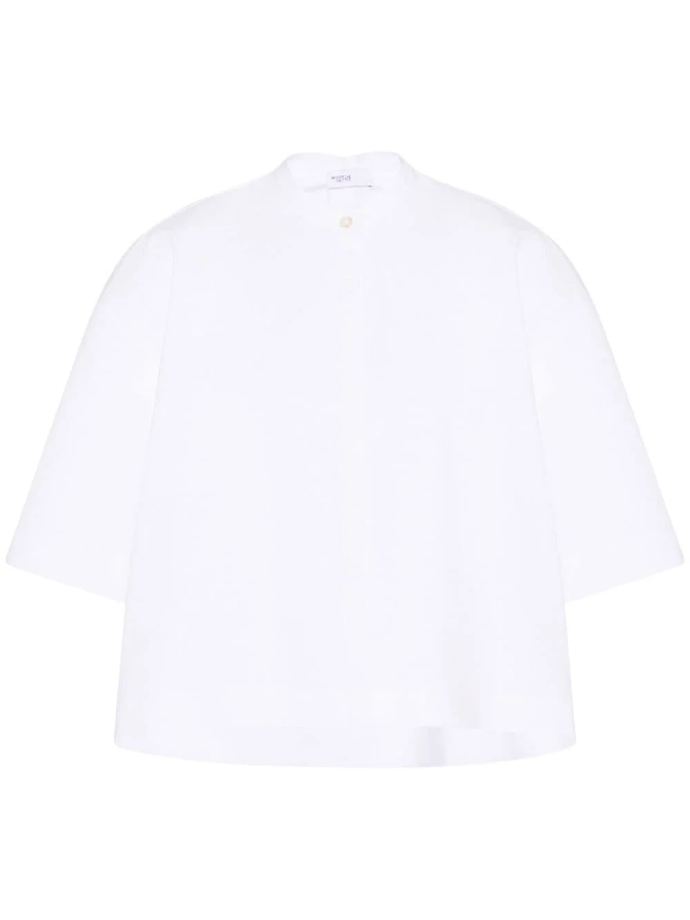 cropped poplin shirt Highlights - White - Stretch-cotton - Poplin texture - Round neck - Front button fastening - Half-length sleeves - Straight hem - Cropped Made in United States Composition Cotton 97%, Elastane 3%