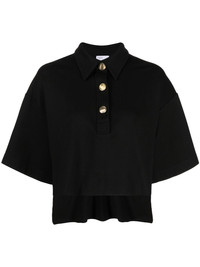 cropped short-sleeve polo top black stretch-design jersey knit embossed gold-tone buttons polo collar short front button fastening drop shoulder short sleeves straight hem cropped Made in Italy Composition Body: Viscose 96%, Elastane 4%