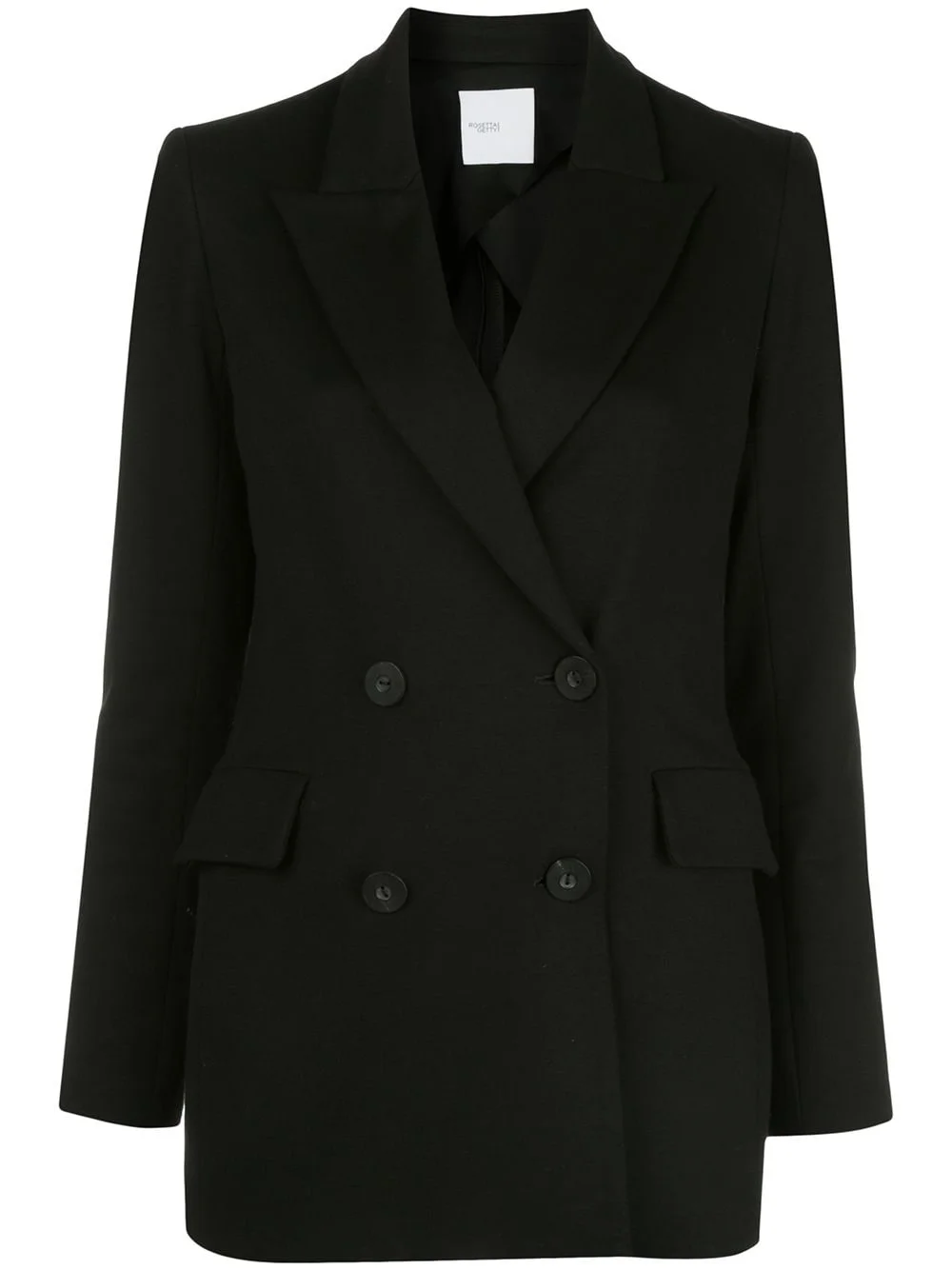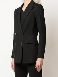 double breasted blazer Highlights - Black - Notched lapels - front button fastening - long sleeves - two side flap pockets Made in United States Composition Viscose 96%, Spandex/Elastane 4%